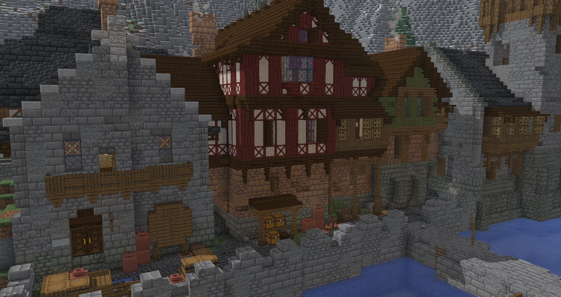 Kaupungissa talot rakennettiin usein kiinni toisiinsa, ja kaikenlaiset omakotitalo-asuinalueet tai vastaavat eivät sovi keskiaikaiselle palvelimelle. Kauempana kaupungin keskustasta taloilla saattoi olla hieman suurempi piha-alue, mutta ainakaan muurien sisällä yhtään tilaa ei tuhlattu.
