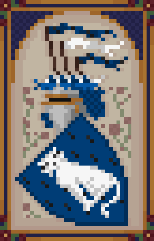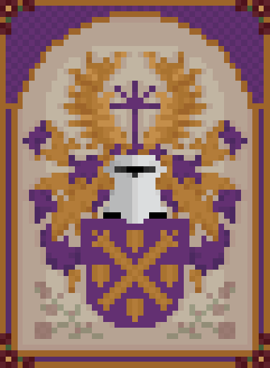 Purppuralla kentällä ristikkäin kahdet airuensauvat, joiden saatteena neljä kilpeä, kaikki kultaa. Kypäränkoristeena Tähden merkki.