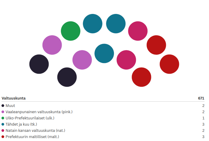Prefektuurissa tällä hetkellä toimivat valtuuskunnat: